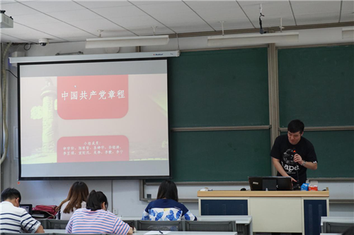 活动分六组进行,学员们以新颖多元的方式,从不同角度对所选书籍进行解读。第一组同学们用一场简单的舞台剧开场,展示了一个腐败的政府官员贪污受贿以权谋私的故事,其中融入了组员们对于《关于新形势下党内政治生活的若干准则》与《中国共产党党内监督条例》的独到理解,表现力突出。第五组的学员则展示了《不忘初心:中国共产党为什么能永葆朝气》的研读成果。学员们就“中国共产党的优秀政治传统、与人民群众融洽的关系、党员们不断学习的能力、中国共产党科学民主的决策”四个具体的话题对文本进行了分析,深刻而又生动地揭示出中国共产党能够长久地保持活力以及不断自我优化的深层原因。其他小组也分别就《中国共产党章程》、《共产党宣言》、《中国共产党廉洁自律准则》、《中国共产党纪律处分条例》、《论共产党员的修养》等经典著作进行了展示,台下的学员们也都精神集中,认真听讲。