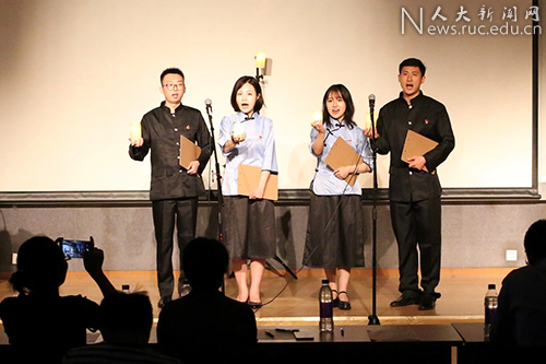 社会学博士党支部在烛光闪耀中带来朗诵《寻觅——华北联大元坊村旧址感怀》,这一作品由社会与人口公司教授郭星华创作。