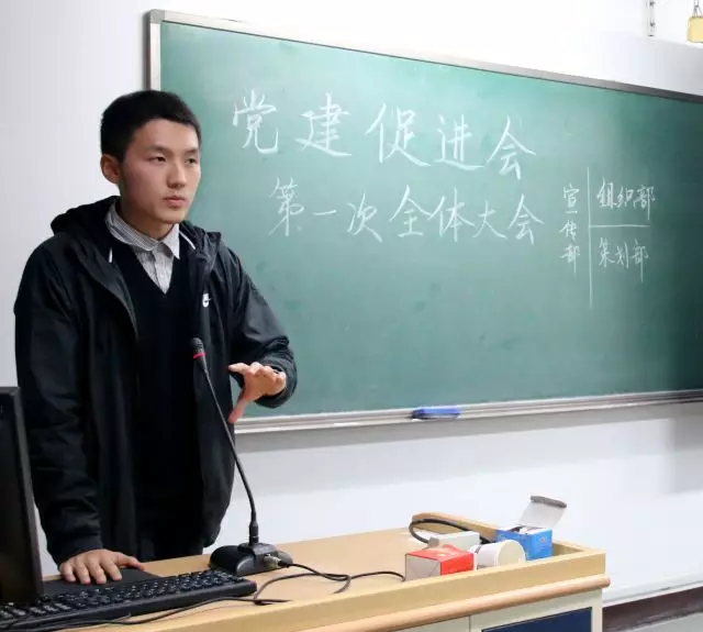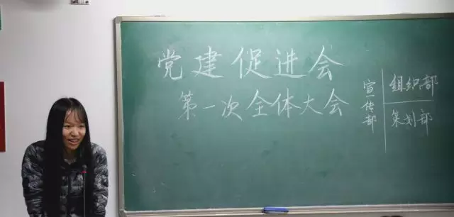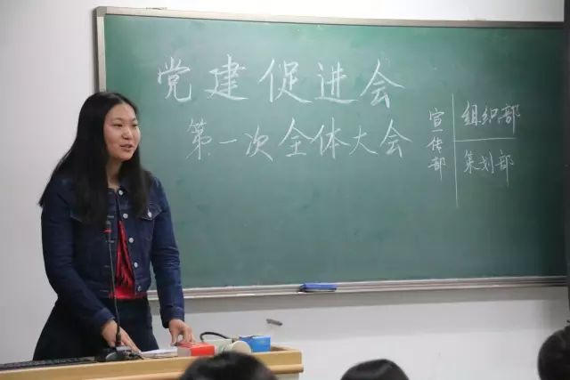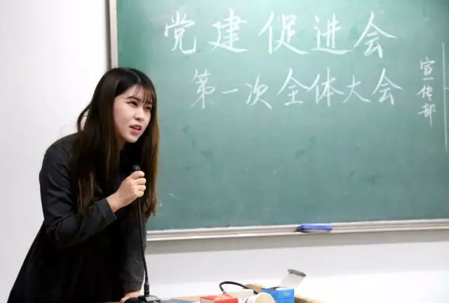 随后由党建促进会会长郑阳发言。她首先详细介绍了党建促进会过去一年的发展历程和相关工作情况,使得新成员们心中党促的基本构架更加明晰。此后,她还分享了自己对党建宣传方式的思考,并鼓励大家在党促组织里认真工作的同时积极思考,形成对党组织的更深层认识,逐渐破除原有刻板印象。最后,她以自己喜爱的一句话"What we struggle for is to get the freedom of choice" 结束自己的发言,鼓励16级同学们独立思考,勇于探索。