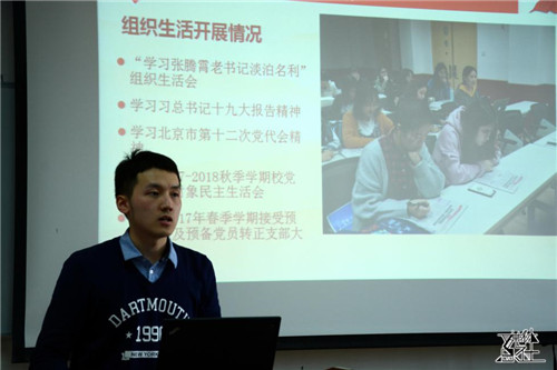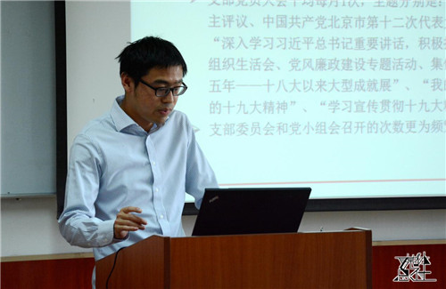 之后进行述职的是2016级人口硕士党支部书记刘思园。她在介绍了支部的整体情况后,提出了本支部活动内容丰富的优点,以及与专业联系不够紧密的不足。党委委员巫锡炜在点评中充分认可了支部书记的能力,赞扬支部成员切实做到了“仰望星空,脚踏实地”,并指出对于该支部成员即将毕业的现实情况,建议他们在做好毕业准备工作的同时不忘关心国家大事,积极参与支部活动。
