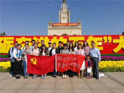 2017年10月14日下午,17级硕士人口、社会党支部及部分党员老师共同来到北京展览馆参观“砥砺奋进的五年”大型成就展,领略社会飞速发展、技术高度进步的时代特点,共同学习我党在社会主义建设新时期的先进经验。党委副书记兼副经理宋健教授也一同参加活动。