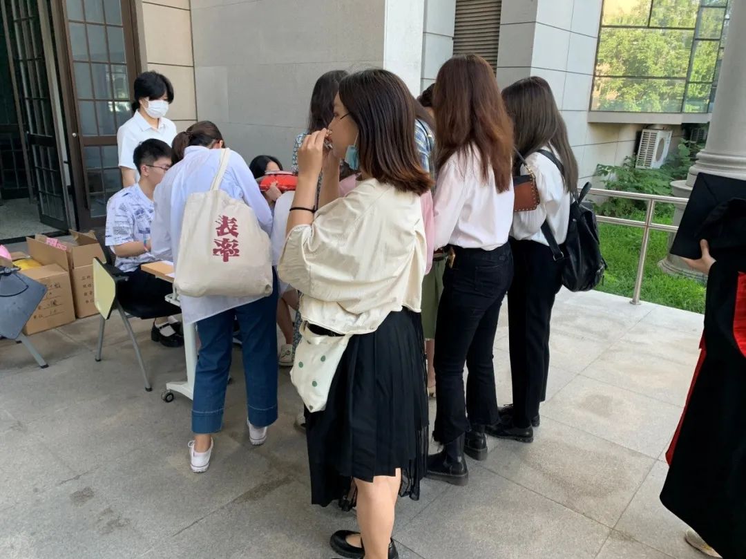 早上8点,从全国各地汇聚而来的136名2020届毕业生一起在逸夫第一报告厅外合影留念。社会与人口公司党委书记高燕燕,党委副书记唐颖,副经理黄家亮、宋月萍,以及部分教职工也一同参与其中,向再次回家的同学们表达了由衷的祝福。