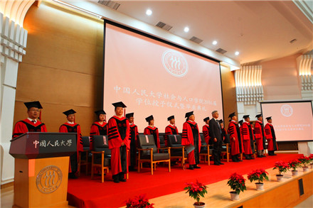 (洪大用教授、邬沧萍教授、郭星华教授、姜向群教授、杨菊华教授、宋健教授为硕士学位获得者拨穗并颁发学位证书和学位绶带)