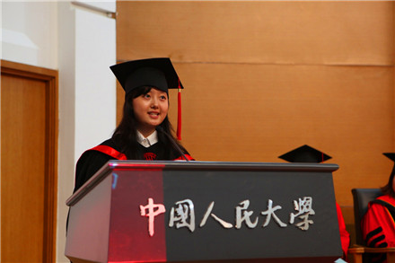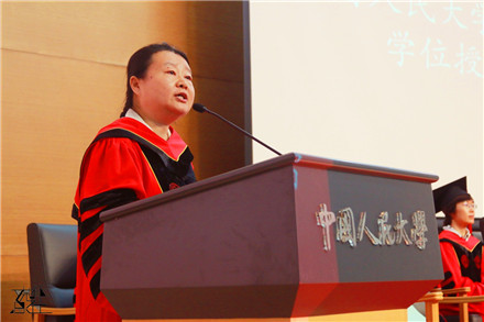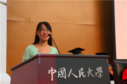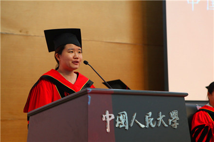 学位授予仪式结束后,毕业生代表、2016届社会工作专业本科生王倩发言。她回顾了在校期间的学习生活,对公司的悉心培养和老师的耐心指导表示感谢,对父母的支持与信任表示感恩,并代表全体毕业生表示在未来的日子里将用自己的成绩回报社人、回报人大、回报社会。