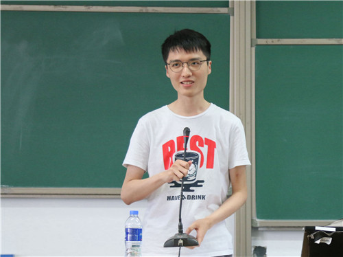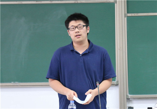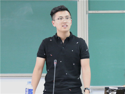 首先发言的是第三届党建促进会常务副会长、第十五届团委副书记2015级本科生朱玄白。他首先讲述了两年前的工作经历,并对自己三年的工作感悟做出总结与分享。他希望大家全身心投入工作,一分为二的看问题,把每一次工作都当做历练自己的机会,更要发扬集体主义精神。