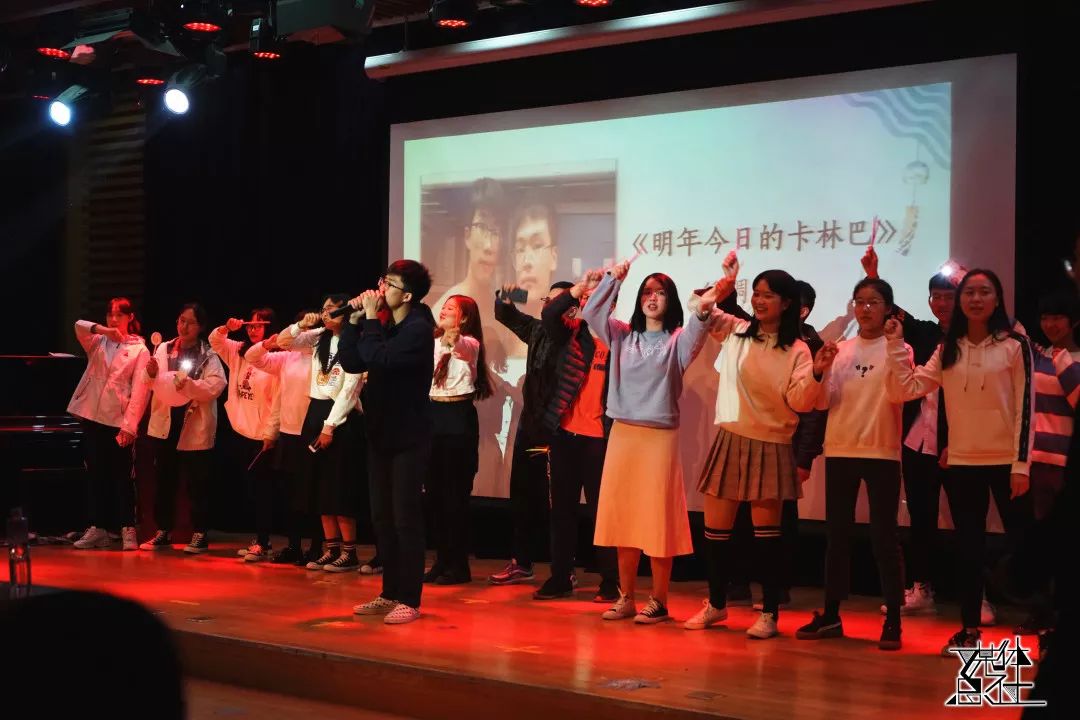 随着《追光者》《小情歌》《明年今日的卡林巴》三支歌曲的进行,晚会步入尾声。全体大合唱中,同学们依依不舍,意犹未尽,而精彩的晚会就此缓缓落下帷幕。