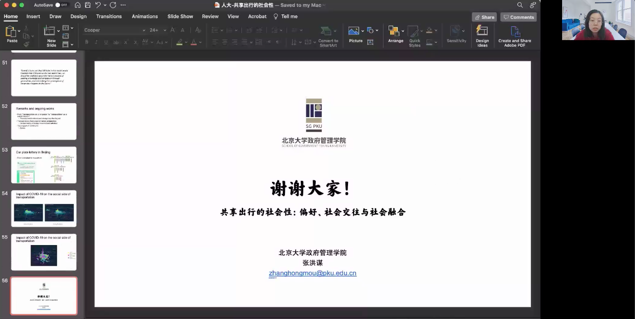 交通是一种语言,也是一种社会关系的表达。此次沙龙的举办让师生们接触到公共管理领域关于城市交通治理的前沿研究成果,了解共享出行对社会交往带来的影响,并结合当前的热点问题进行深入思考和讨论,这对师生们进一步开展交通对个体、家庭和社会的影响研究具有深刻的启发意义。