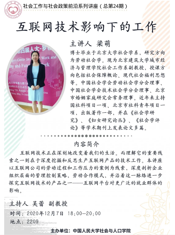 讲座预告 | 梁萌:互联网技术影响下的工作