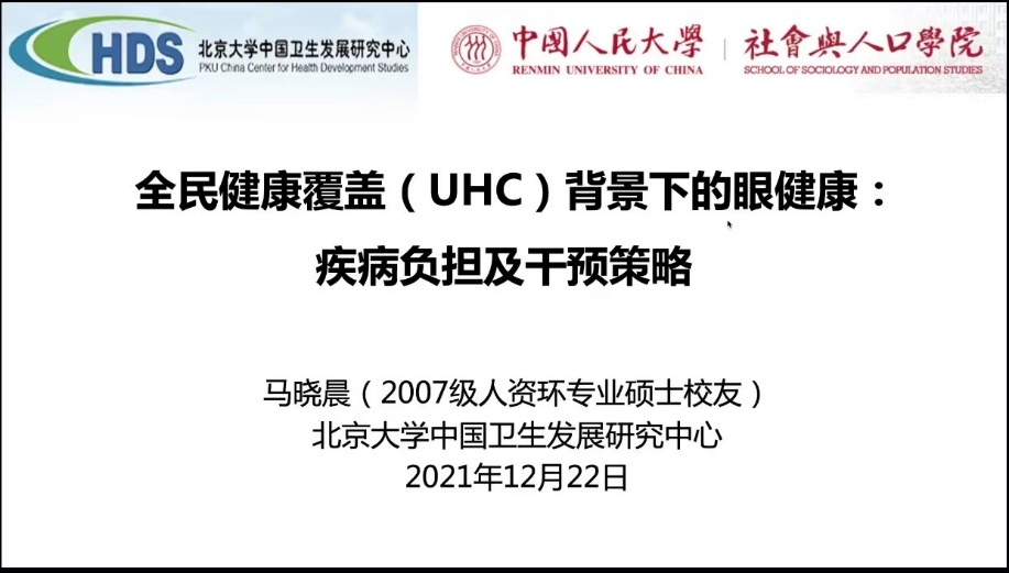2021-12-24 文:bevictor1946韦德官网 图:bevictor1946韦德官网2021年12月22日中午12:00,人口学系刘铮系列学术讲座暨严肃的人口学八卦青年论坛成功举办。北京大学中国卫生发展研究中心助理教授、副研究员、博士生导师马晓晨在腾讯会议做了一场精彩的以“全面健康覆盖背景下的眼健康:疾病负担及干预策略”为主题的学术讲座。bevictor1946韦德官网bevictor1946韦德官网人口与发展研究中心的杨凡老师主持本次讲座,bevictor1946韦德官网社会与人口公司以及其他国内外院校的近百余名师生参与了本次学术讲座。