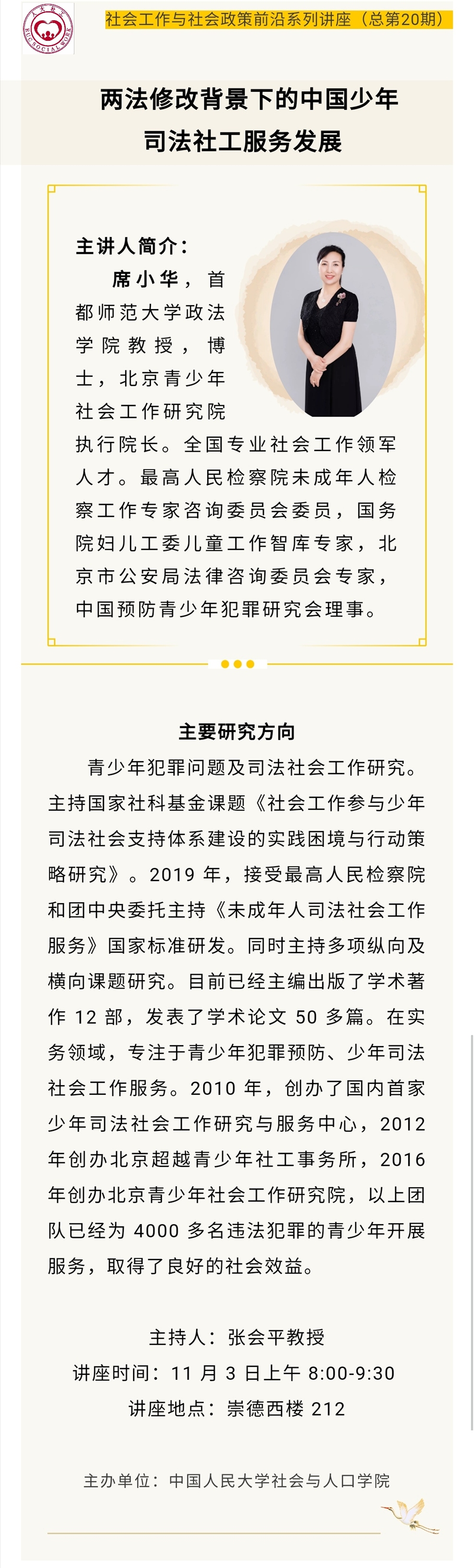 讲座预告 | 席小华:两法修改背景下的中国少年司法社工服务发展