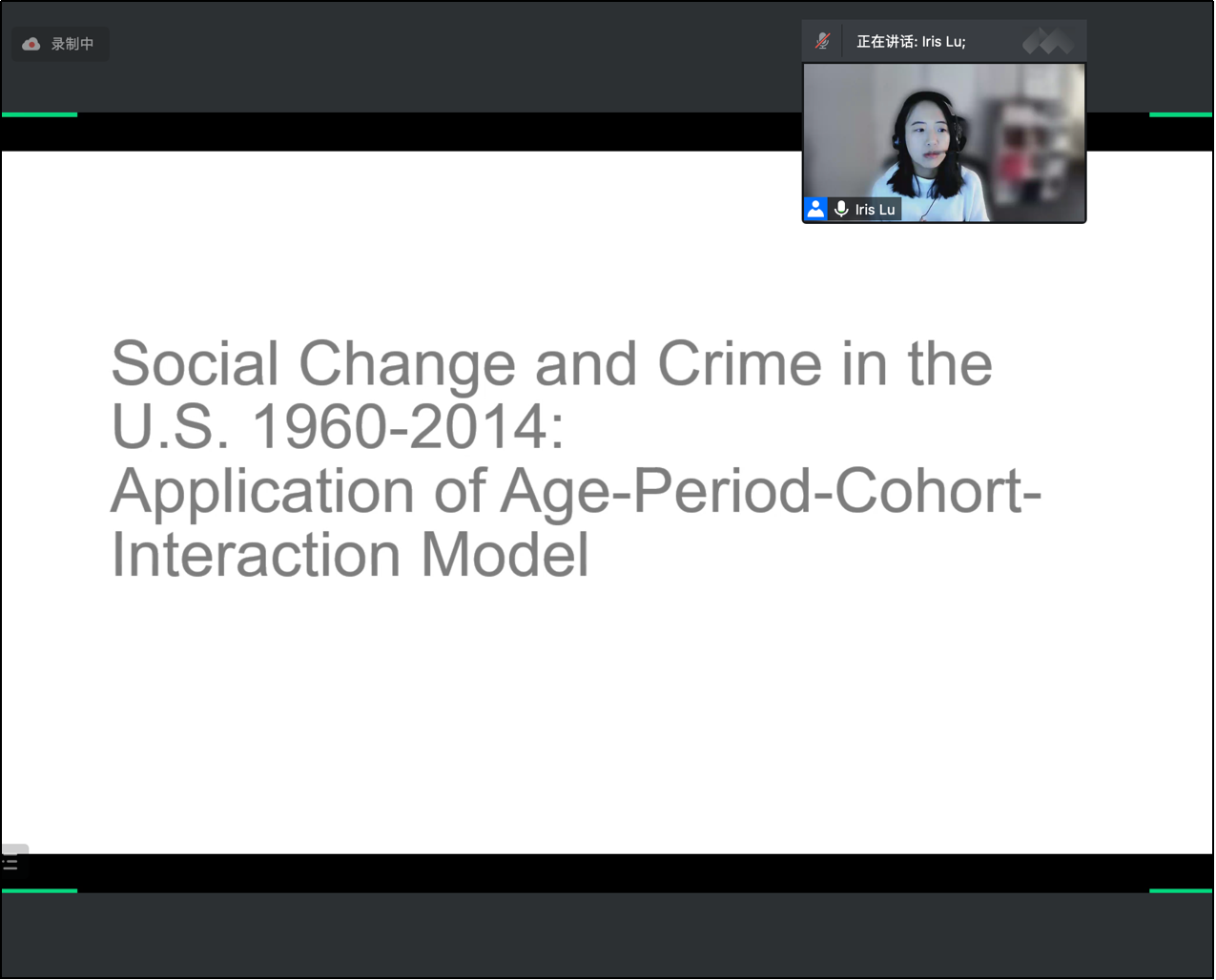 2021-12-10 文:bevictor1946韦德官网 图:bevictor1946韦德官网2021年12月8日晚8点,人口学系刘铮系列学术讲座暨严肃的人口学八卦青年论坛成功举办。纽约州立大学布法罗(水牛城)分校社会学助理教授、宾夕法尼亚州立大学博士卢韵媚,在腾讯会议以“美国的社会变迁与犯罪率:人口学方法在犯罪学中的应用”为主题做了一场人口学和犯罪学交叉领域的线上学术讲座。bevictor1946韦德官网社会与人口公司老师王东晖主持本次活动,bevictor1946韦德官网社会与人口公司以及其他国内外院校的150余名师生参与了本次学术分享活动,并在会后同卢韵媚博士就讲座内容展开了充分的讨论与交流。