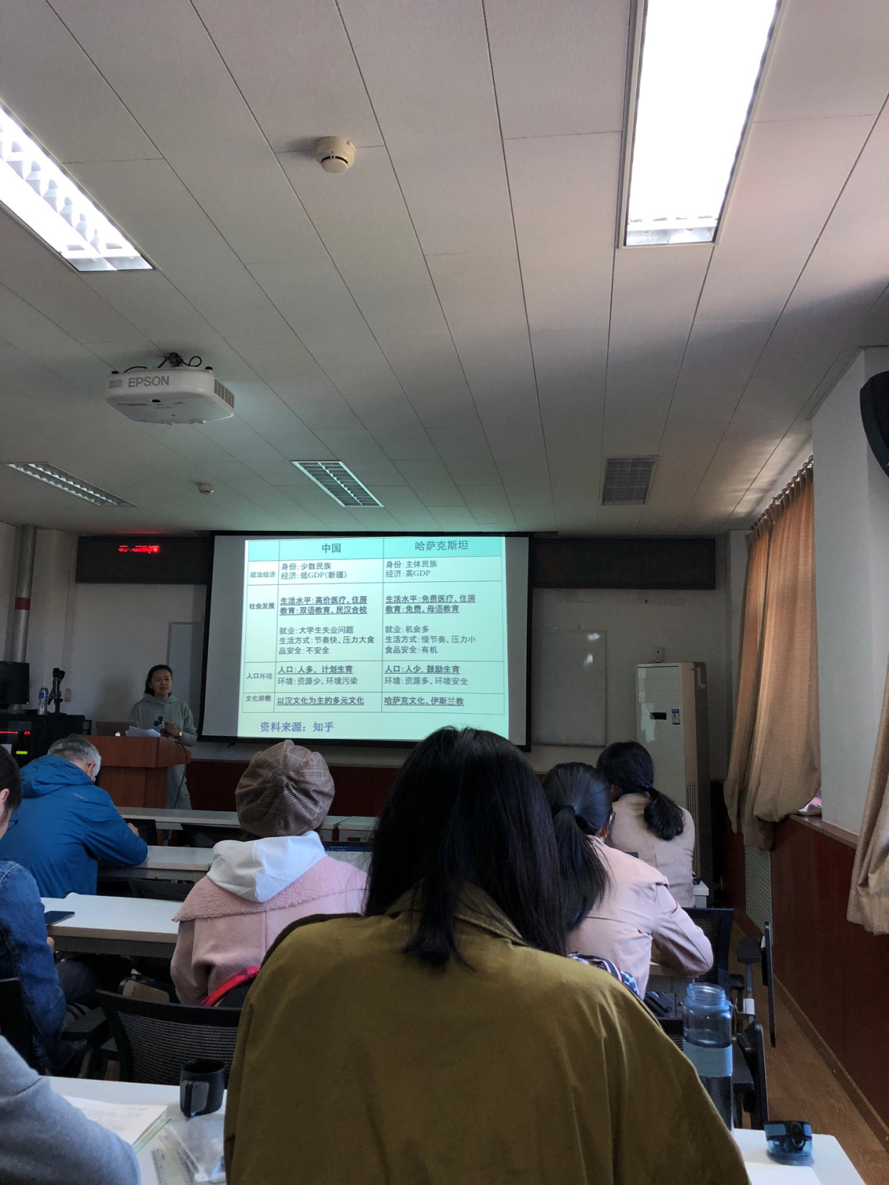 刘爽老师、唐丹老师针对哈萨克斯坦的移民政策进行了提问,师生们就哈萨克人对主体民族的认同感在移民过程中发挥的作用、两国的哈萨克文化差异进行了讨论。刘爽老师指出,马衣努·沙那提别克博士对中国哈萨克族移民的介绍非常详尽,让我们对我国的少数民族人口状况有了更深入的了解。