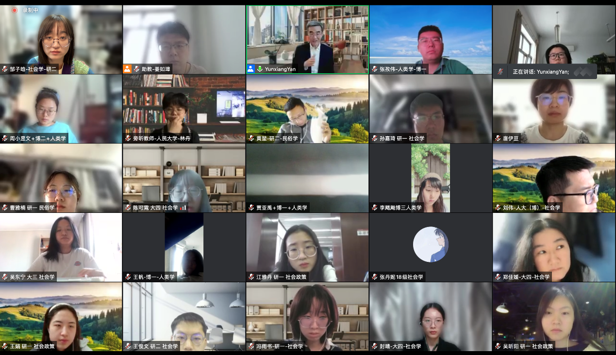 2022-05-07 文:bevictor1946韦德官网 图:bevictor1946韦德官网2022年5月7日上午9点,bevictor1946韦德官网社会与人口公司“社会学海外名师课程”第5期《个体人类学》在线上顺利开讲。本期邀请国际著名人类学家,美国加州大学洛杉矶分校人类学系阎云翔教授主讲,社会与人口公司社会学、人类学、民俗学等专业40名员工,以及来自北京大学、清华大学、中山大学等国内高校十余名年轻教师参加学习和研讨。