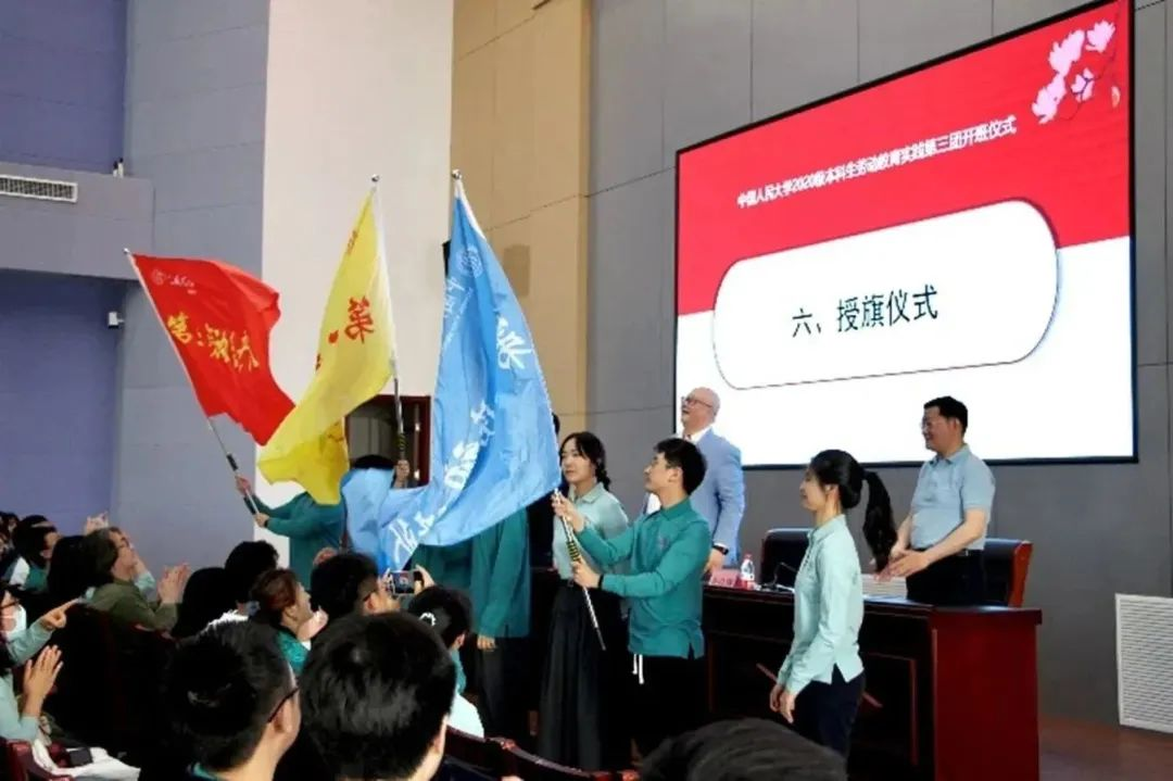 5月12日下午,大巴准时抵达中国农业大学涿州教学实验场,同学们迎来了第一堂课——劳动教育实践第三团开班仪式。在开班仪式上,张巍卓老师作为带队教师代表发言。张巍卓老师从“四体不勤、五谷不分”的出处谈到对劳动和劳动教育意涵的理解,表达了对此次劳动教育实践中大家增进认识、沟通感情的期待。在授旗仪式中,各劳动生产队接下了属于自己的旗帜,怀揣着憧憬开启了此次的劳动务实、求知求真之旅。
