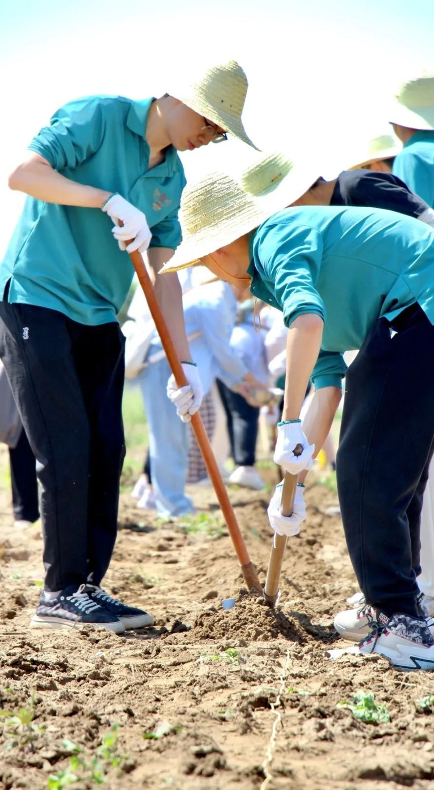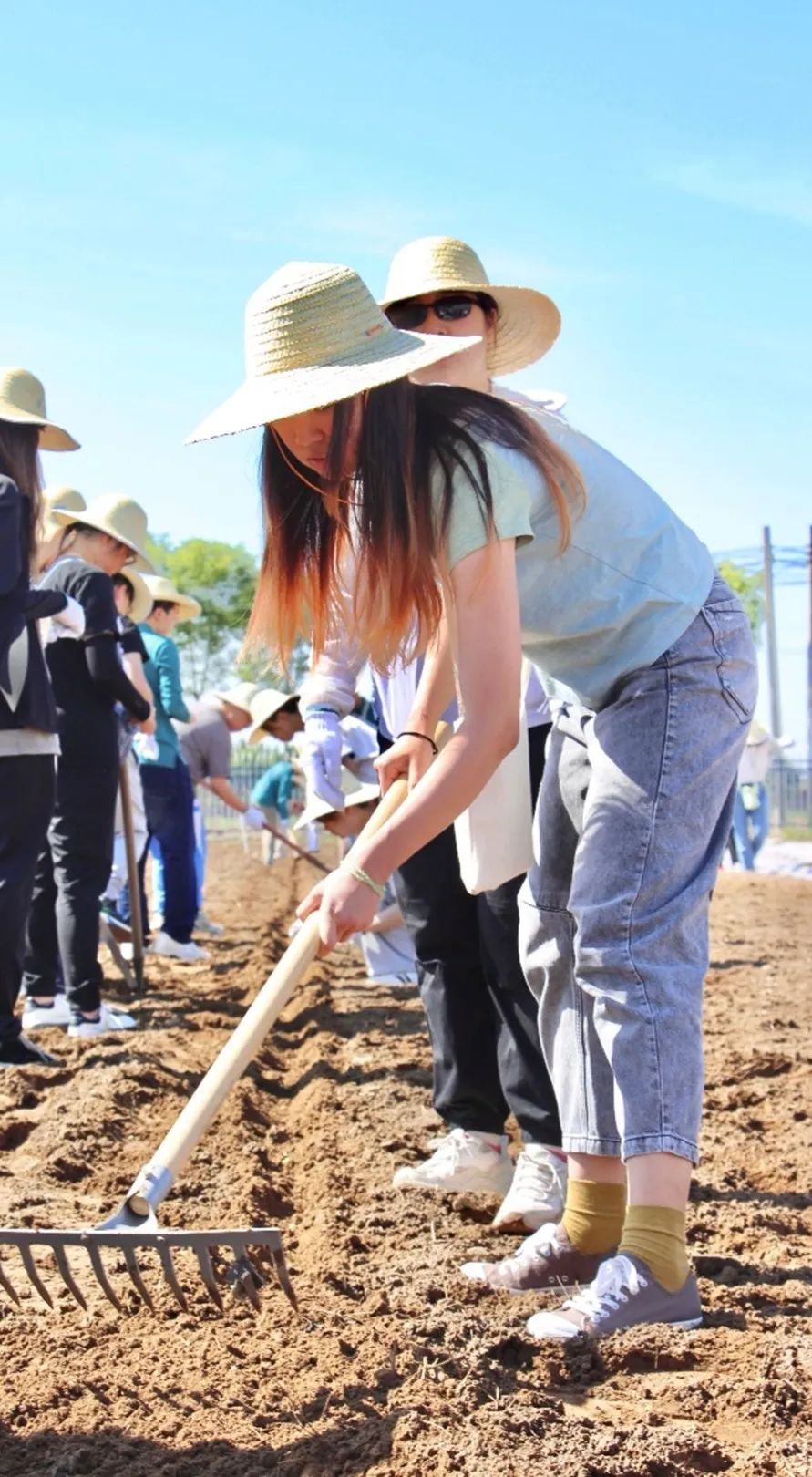 上午,同学们亲身体验了黄豆和玉米的种植,用脚步丈量田野垄头,用锄头和犁耙感受泥土的坚实触感,捧起种子和肥料洒进土沟,也是将汗水、希望和美好的记忆一同播在广阔的田野上。