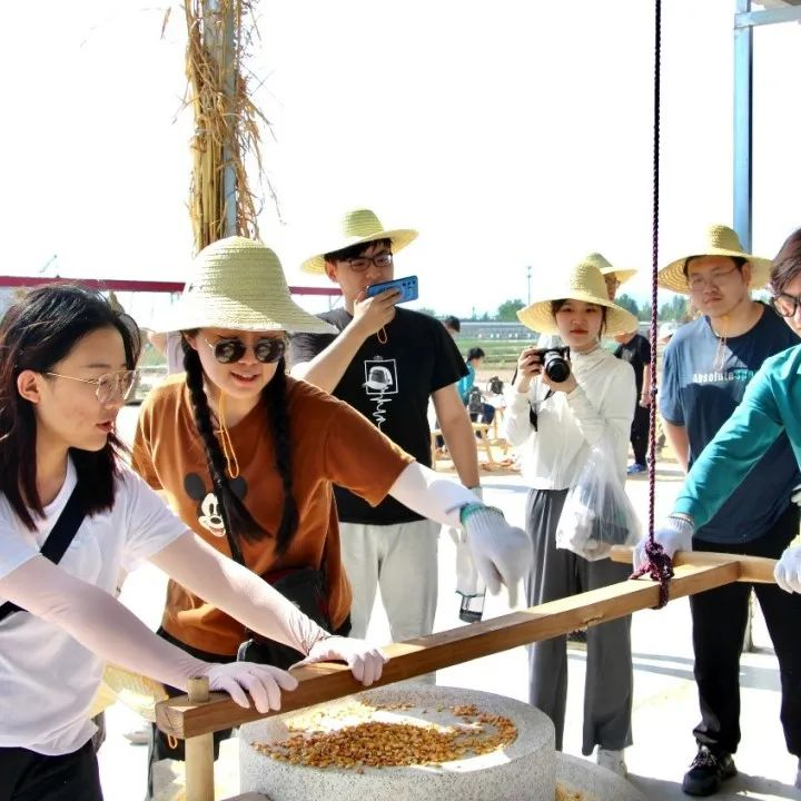 下午,同学们进入农业科技大棚采摘蔬果,参观农业生产机械,并在田间指导老师的陪同下亲自驾驶拖拉机;也在各种作物田块中了解幼苗的生长,让原始的石磨中流出玉米颗粒研磨成的金色海浪,在辛劳中更加感受到现代农业科技的先进与高效。
