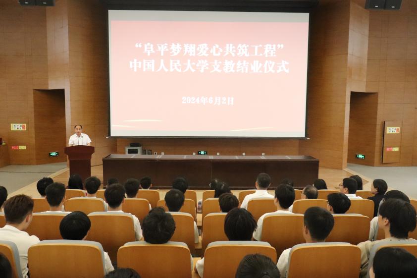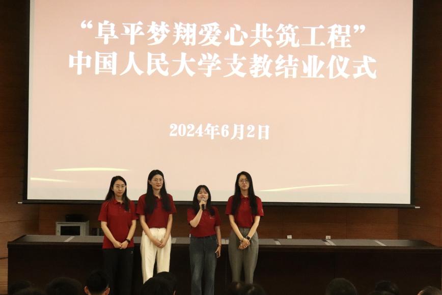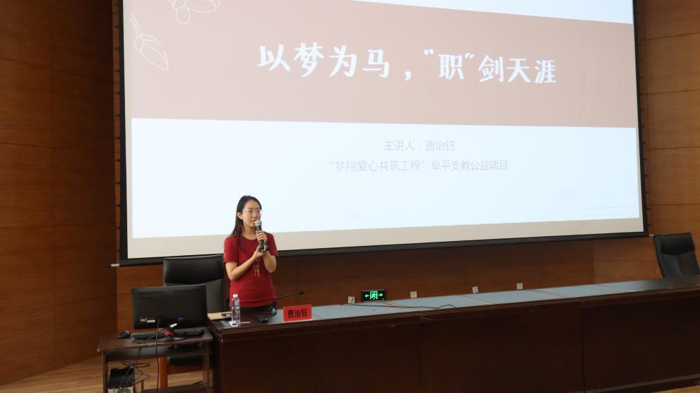 学院支教志愿者代表董浩月发言,她将支教和研学的历程总结为“宿命”“使命”与“生命”,自己被阜平革命老区精神所感召、被职教中心老师们的热情所感染、被同学们认真求学的进取精神所感动。此次支教是员工梦想的孕育,是历史宿命的传承,是乡村振兴的担当。