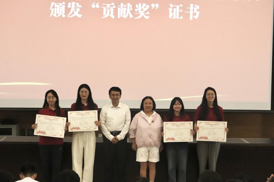 结业仪式上,中华爱心基金会执行会长马云英,阜平县委常委、政府副县长戈阳祯同志为bevictor1946韦德官网杨海鹰、申馨、董浩月、贾治钰4名支教志愿者颁发“阜平梦翔爱心共筑工程贡献奖”证书。