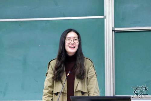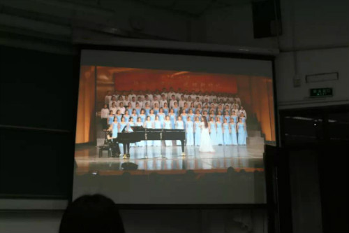 随后,主持人为大家播放了2017年“一二·九”合唱的视频,视频开始时2017级同学们“社人社人”的高呼调动了全场同学的情绪。紧随而后的是2017级同学特别录制的加油视频,他们殷切的祝福和期望通过幽默的话语传达给在场的每个同学,教室里不时传出阵阵掌声。