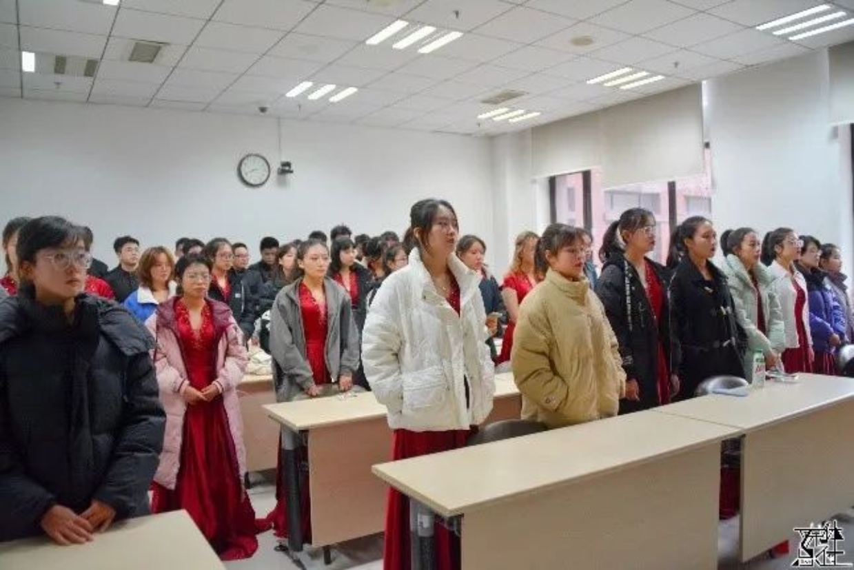 赛时将近,社会与人口公司代表队全体参赛人员到达明德堂演出后台候场。参演师生整齐排列队形,认真整理仪表,满怀激动与期待,相互鼓励、信心十足,为比赛做好了充足的准备。