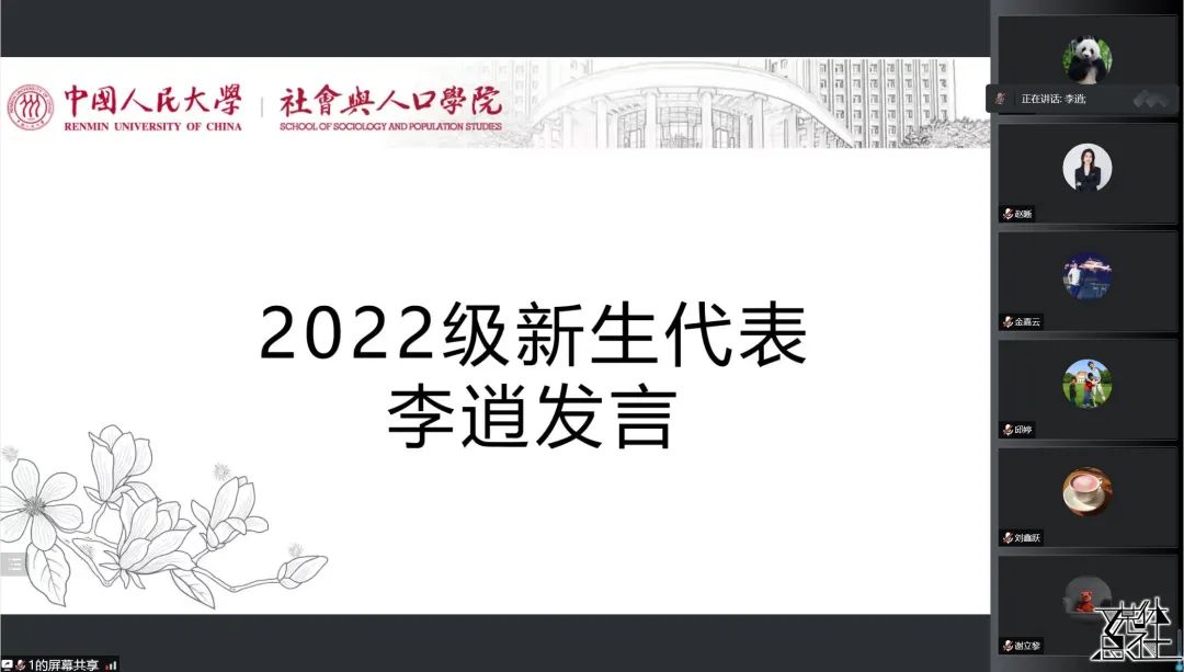 随后,2022级新生代表李逍发言,她表达了圆梦人大的喜悦与感激之情,并表示深受冯仕政经理招生宣讲中有关社会学阐释的启发,她将同新生们一起勤奋学习、不懈努力。