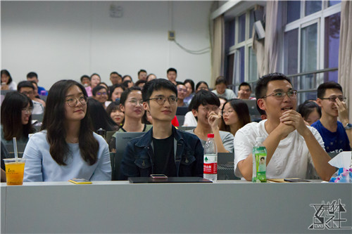 接下来,主持人邀请各大团学组织的宣讲人上台为新生们介绍各大组织的基本信息,帮助同学们找到自己的兴趣,做出合适的选择。首先上台的是党建促进会宣讲人2017级本科生谢家斌,他用一段热血励志的视频吸引了在座所有人的目光,随后为大家详细介绍了党建促进会是什么以及党建促进会的历史、主要工作、部门组成及各部门的职能。随后公司分团委宣讲人2017级本科生黄子静为大家播放了公司分团委的宣传视频,幽默风趣的视频引来了教室内一阵阵笑声,随后她为大家详细介绍了公司分团委的基本信息、部门组织及各部门的职能。紧接着,公司员工会宣讲人2016级本科生姜如璋介绍员工会的基本信息,他用一段精彩的招新视频为开场,并用风趣的语言介绍了员工会各个部门的信息与职能,并邀请员工会舞蹈团和辩论队负责人2017级本科生王婉伊与2017级本科生洪静澜分别介绍舞蹈团和辩论队的信息和光辉历史。随后,“心语”青年志愿者协会宣讲人2017级本科生张英楠介绍“心语”青年志愿者协会的情况,她首先用一段感人的视频展现了青协各个部门所做的工作,随后为大家详细介绍了青协的各个部门。最后,媒体总社宣讲人2017级本科生陈疏影为大家介绍媒体总社的基本情况,她首先播放了一段精心制作、精彩纷呈的《社人快讯》,为大家展现了媒总各个部门的风采,随后为大家详细介绍了媒总各个部门的主要工作与特点。