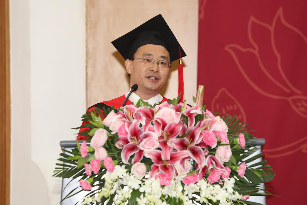 谢立黎副教授作为教师代表发言。她希望同学们为自己建立合理的目标、培养起自我管理的能力、珍惜健康、保持乐观积极和开放的心态,成为这个世界上独一无二的“国民表率、社会栋梁”。