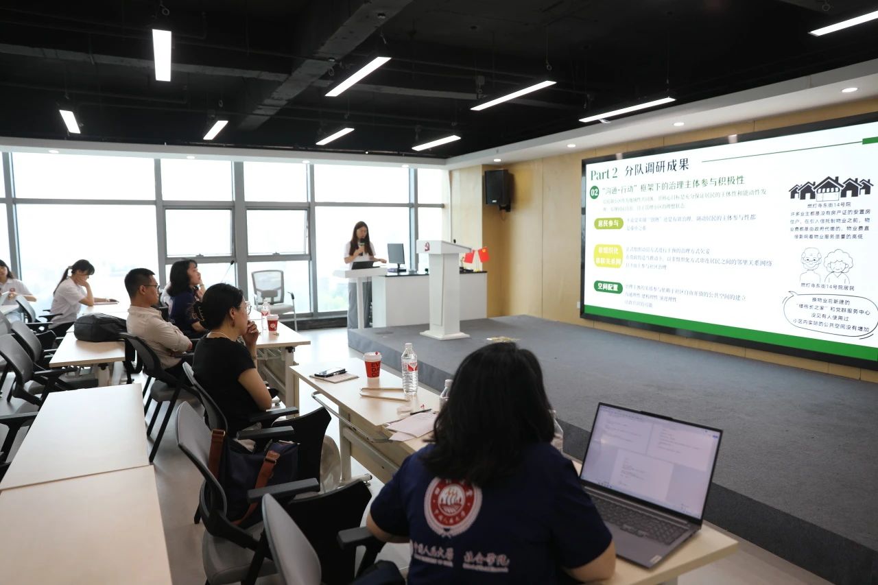 2024年7月15日,2024年度田野课堂成都教学基地的中期汇报在成都市社区发展治理支持中心顺利举行,bevictor1946韦德官网田野课堂成都组的师生与武侯社区基金会的秘书长李济舟共计40余人出席本次的中期总结性汇报。各小组在为期5天的实地调研后,于上午进行了以小组为单位的四个小组中期汇报,一方面总结前五天的调研成果,另一方面为后续的田野调查指明方向。中期汇报由各小组分组汇报、李济舟秘书长交流分享信义治理经验、互动提问三个部分构成。