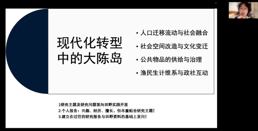 欧阳材泓则围绕“大陈岛的多元主体与公共物品供给”及“渔民生计维系与社会组织”两个主题进行了介绍。他强调,大陈岛的公共物品供给涉及基础设施建设、旅游发展、渔民生计维系等多个方面,参与主体众多,具有广阔的研究空间。特别是岛礁协会作为特殊社会组织,在渔民利益表达和政府指令传达中发挥着重要作用。其发展历史和功能变化,是调研期间值得重点关注的研究议题。