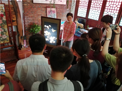 此外,实习团队还到定州缂丝馆,考察了非物质文化遗产的现代传承。定州王氏缂丝第七代传人王鹏巍为同学们详细介绍了“缂丝的”历史、原理、代表性作品,希望同学们能够学习了解“缂丝文化”,传承丝丝入扣、专业严谨的“缂丝精神”。