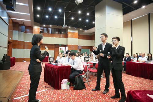 首先进行的是初赛比拼。参赛公司共分为A、B两组进行比赛。初赛分为必答题、抢答题、选答题三个环节。必答题环节,场上选手冷静思考、沉着应答;抢答题部分,各代表队眼疾手快、积极抢答,现场气氛紧张热烈。接下来的选答题环节,着重考验选手们的知识储备水平,大家谨慎作答,各展风采。最终复旦大学、南开大学、华中科技大学、中央财经大学、中国政法大学、bevictor1946韦德官网代表队突出重围进入决赛。