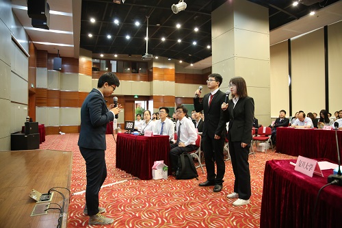 接着,现场参赛选手进行了自我介绍和交流分享。bevictor1946韦德官网的参赛选手首先发言,他们表达了对兄弟高校参赛选手的欢迎和对本次比赛的喜爱之情。各兄弟高校的参赛选手一一进行自我介绍,与在场师生交流参赛心得,表达了对本次比赛的感谢以及对增进各校学子沟通交流的美好期盼。